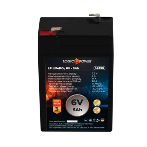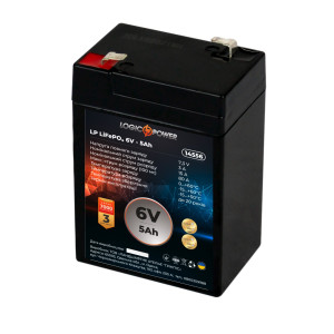 Литий железо-фосфатный аккумулятор LogicPower 6V 5Ah LiFePO4 LP14556 произведенный по технологии LiFePO4 обладает очень широким спектром применения: начиная от электротранспорта и заканчивая спецоборудованием и источниками бесперебойного питания.