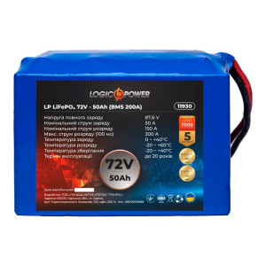 Литий железо-фосфатный аккумулятор LogicPower 72V 50Ah LiFePO4 LP11930 произведенный по технологии LiFePO4 обладает очень широким спектром применения: начиная от электротранспорта и заканчивая спецоборудованием и источниками бесперебойного питания.