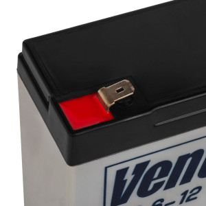 Аккумуляторная батарея имеет напряжение 6 Вольт, емкость 12 Ач и является полностью необслуживаемой. За счет герметичного корпуса ее можно эксплуатировать внутри помещения без вреда для здоровья. Клапанный механизм обеспечивает рекомбинацию газов внутри аккумулятора, что увеличивает срок службы до 12+ лет.