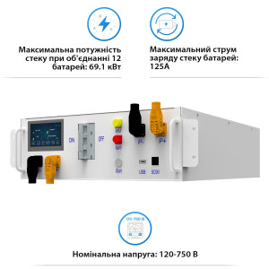 Контроллер литиевых батарей BMS Deye HVB750V/100A-EU для Deye LiFePO4 BOS-GM5.1 является контроллером высоковольтных батарей. Этот контроллер позволяет подключить параллельно до 8 стеков (в каждом стеке до 12 аккумуляторов) и подключить их к гибридным инверторам. Благодаря этому контроллеру можно увеличить производительность ESS, а также увеличить время ее работы. С помощью модуля BMS Deye LiFePO4 BOS-GM5.1 вы можете увеличить производительность вашей системы. Еще больше увеличить срок службы аккумуляторов за счет поочередного использования двойного модуля.
