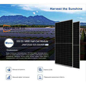 - Мощность: Каждая солнечная панель JA Solar JAM72S30-540/MR имеет мощность 540 вт. Это означает, что каждая панель может генерировать до JA Solar JAM72S30-540/MR электрической энергии при оптимальных условиях освещения.
