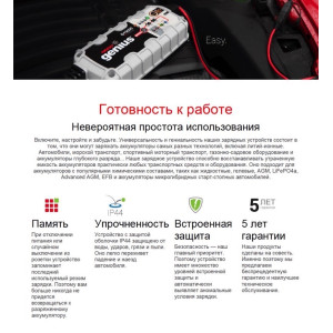 В процессе зарядки контролируется состояние батарей. Выявляются закороченные или неисправные АКБ. Полностью исключается риск образования искр, перезаряда и выхода из строя батарей из-за неправильного подключения клемм.