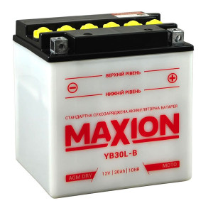 Аккумулятор Maxion 30Ah AGM YB30L-B относится к числу необслуживаемых аккумуляторных батарей. Это означает, что продукция поступает к покупателю в уже залитом виде (электролит в комплекте), со 100% зарядом. Пользователю не нужно предпринимать никаких дополнительных действий, только подключить АКБ и начать его использовать.