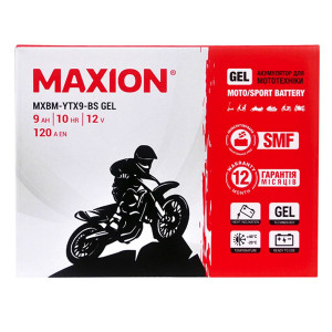 Аккумулятор Maxion 9Ah GEL YTX9-BS относится к числу необслуживаемых аккумуляторных батарей. Это означает, что он поступает к покупателю с уже залитым гелевым электролитом, полностью готовым к эксплуатации (100% заряд). Остается только подключить устройство к мотору вашей техники и начать использование.