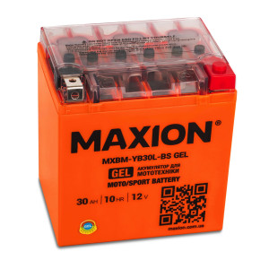 Аккумулятор Maxion 30Ah GEL YB30L-BS произведен по гелевой технологии с добавлением геля в качестве электролита. Это обеспечивает эксплуатацию батареи в самых экстремальных условиях. Также вязкая консистенция электролита дает возможность устанавливать АКБ под различными углами вплоть до 90 градусов.