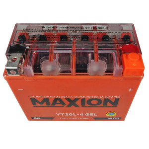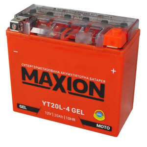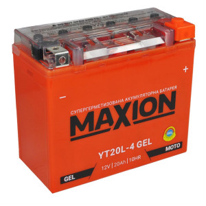 Аккумулятор Maxion 20Ah GEL YT20L-4 произведен по гелевой технологии с добавлением геля в качестве электролита. Это обеспечивает эксплуатацию батареи в самых экстремальных условиях. Также вязкая консистенция электролита дает возможность устанавливать АКБ под различными углами вплоть до 90 градусов.