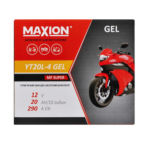 Аккумулятор Maxion 20Ah GEL YT20L-4 относится к числу необслуживаемых аккумуляторных батарей. Это означает, что он поступает к покупателю с уже залитым гелевым электролитом, полностью готовым к эксплуатации (100% заряд). Остается только подключить устройство к мотору вашей техники и начать использование.