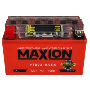 Аккумулятор Maxion 7Ah GEL YTX7A-BS-DS применяется для запуска моторов мотоциклов, мопедов, скутеров, квадроциклов и прочей схожей техники. Батарея относится к категории гелевых устройств, которые функционируют на основе использования густого электролита.