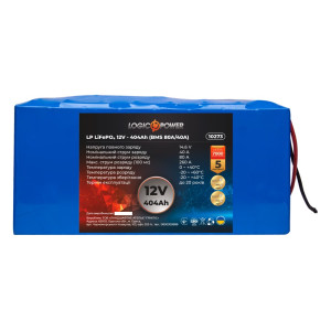 Літій залізо-фосфатний акумулятор LogicPower 12V 404Ah LiFePO4 LP10273 виготовлений за технологією LiFePO4, володіє дуже широким спектром застосування: починаючи від електротранспорту і закінчуючи спецобладнанням і джерелами безперебійного живлення.