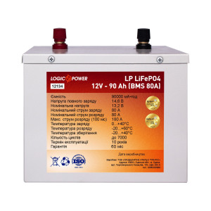 Літій залізо-фосфатний акумулятор LogicPower 12V 90Ah LiFePO4 LP12134 виготовлений за технологією LiFePO4, володіє дуже широким спектром застосування: починаючи від електротранспорту і закінчуючи спецобладнанням і джерелами безперебійного живлення.