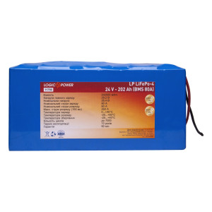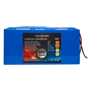 Літій залізо-фосфатний акумулятор LogicPower 24V 202Ah LiFePO4 LP11756 виготовлений за технологією LiFePO4, володіє дуже широким спектром застосування: починаючи від електротранспорту і закінчуючи спецобладнанням і джерелами безперебійного живлення.