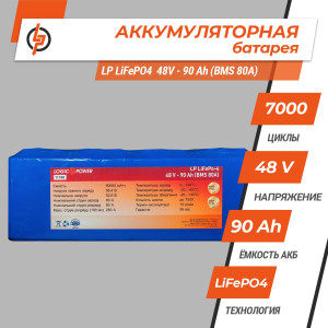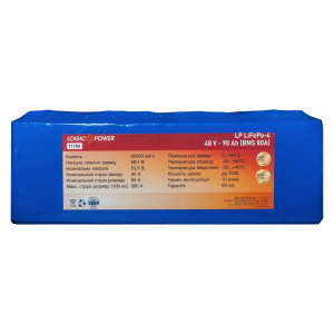 Літій залізо-фосфатний акумулятор LogicPower 48V 90Ah LiFePO4 LP11760 виготовлений за технологією LiFePO4, володіє дуже широким спектром застосування: починаючи від електротранспорту і закінчуючи спецобладнанням і джерелами безперебійного живлення.