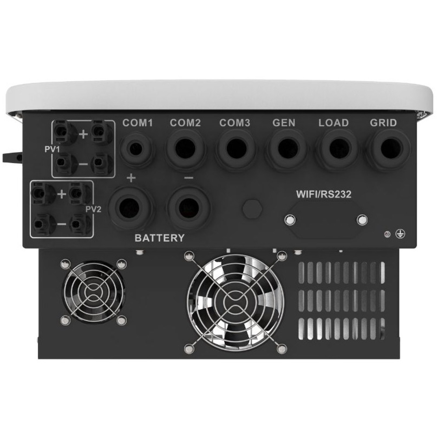Deye SUN-8K-SG05LP1-EU — це однофазний гібридний інвертор потужністю 8 кВт, який дозволяє реалізувати автономні, мережеві або гібридні сонячні станції. Працює з акумуляторами 48 В (LiFePO₄ або свинцевими), має два незалежні MPPT-трекери, підтримує паралельну роботу до 16 інверторів та дозволяє гнучко керувати енергопотоками між мережею, навантаженням, АКБ і панелями.