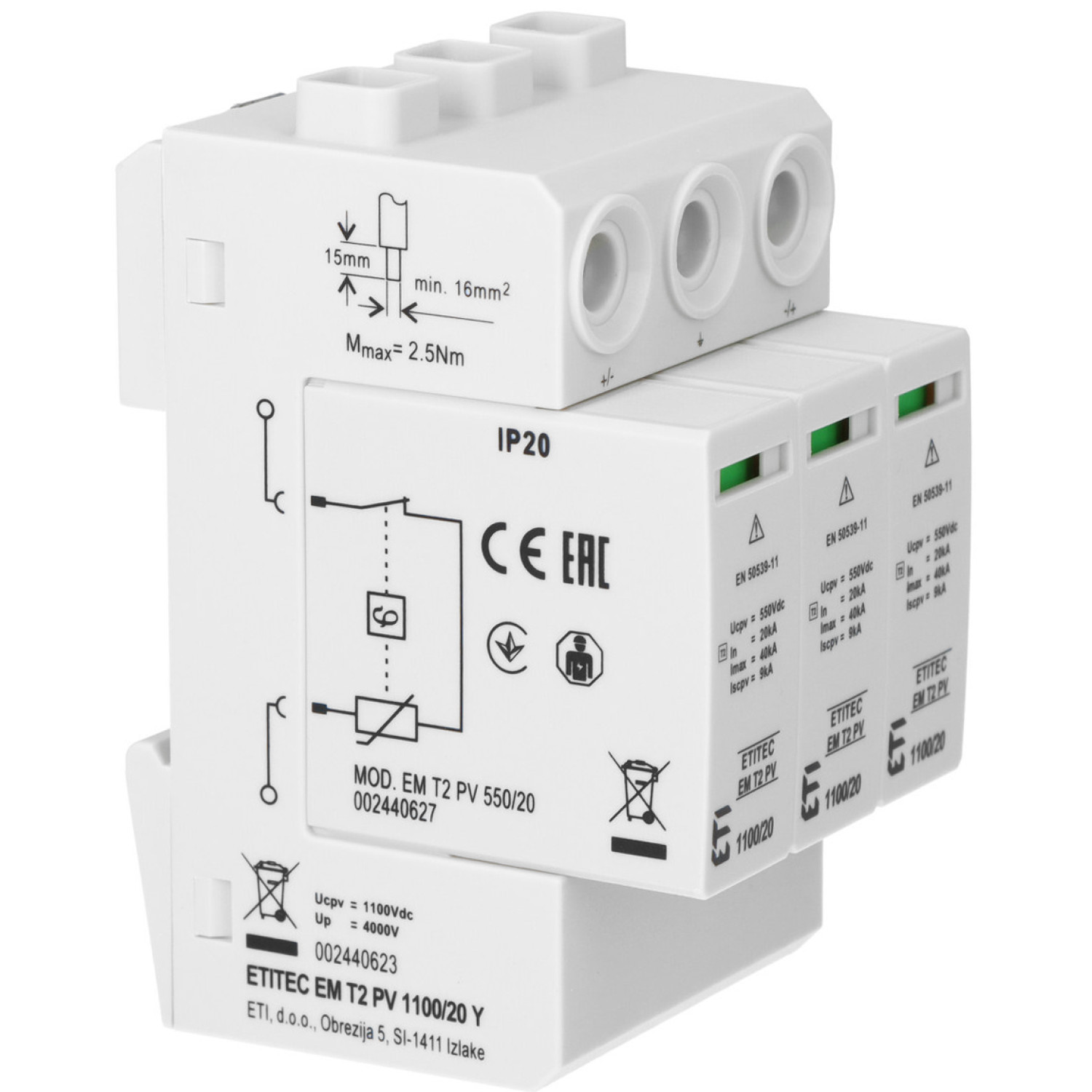 ETITEC EM T2 PV 1100/20 Y — УЗІП типу 2 для захисту сонячних систем постійного струму до 1100 В