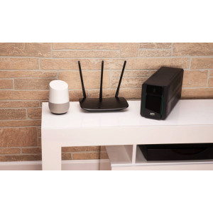 При звичайній роботі живлення надходить від електромережі, до якої підключений ДБЖ. Споживачі підключаються в свою чергу до ДБЖ, в якому вбудовано 4 розетки на 230 (±10%) В. Якщо в мережі пропадає електроживлення, то прилад швидко переключається на роботу від акумулятора.