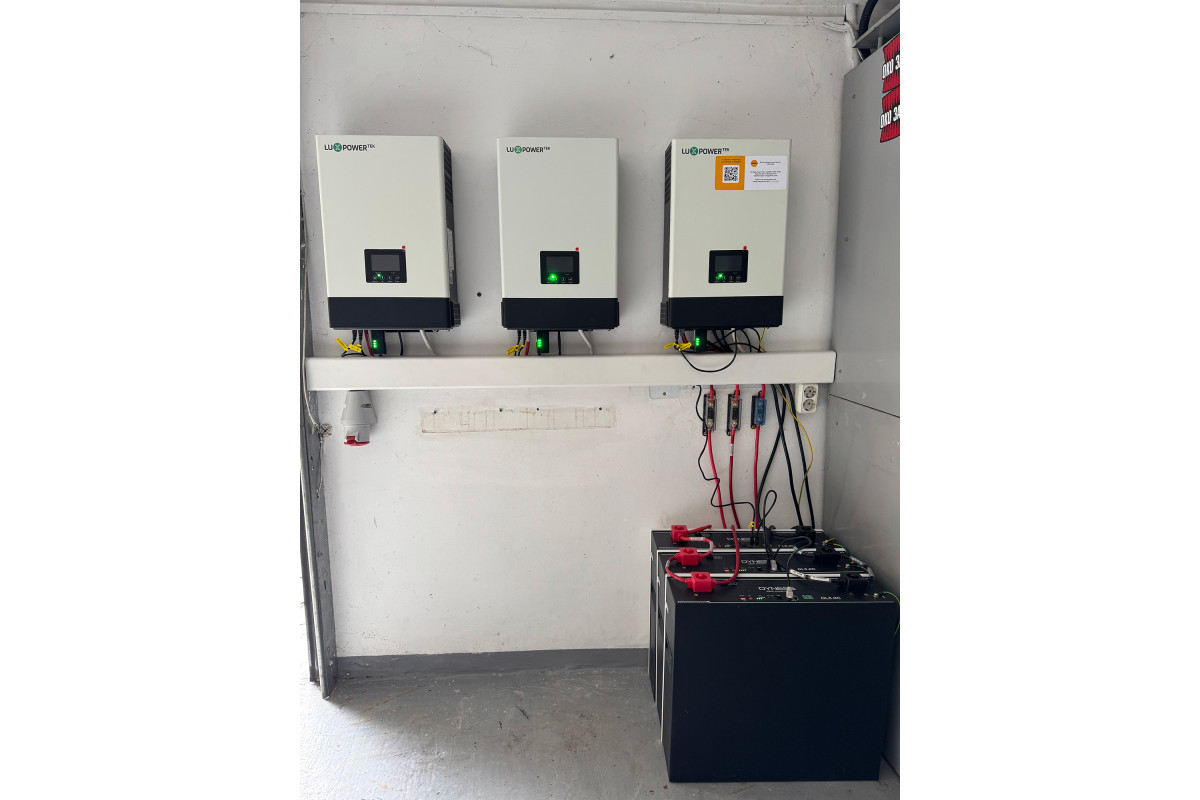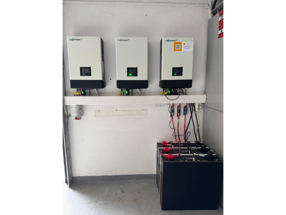 Станция построена на базе трёх инверторов Luxpower SNA5000 Wide PV, аккумуляторных модулей Dyness DL5.0C и солнечных панелей TW Solar и JA Solar.
