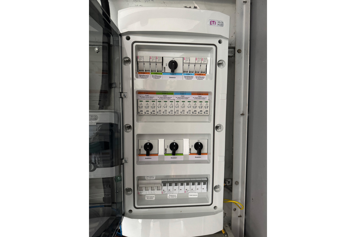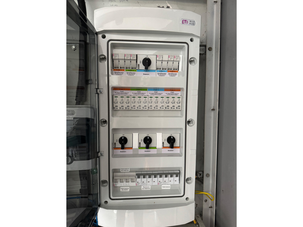 Мы также выполнили монтаж и проверку заземления (у заказчика оно ранее отсутствовало) и установили защитное оборудование между инверторами и солнечными панелями, а также между инверторами и сетью — для дополнительной безопасности и долговечности оборудования.